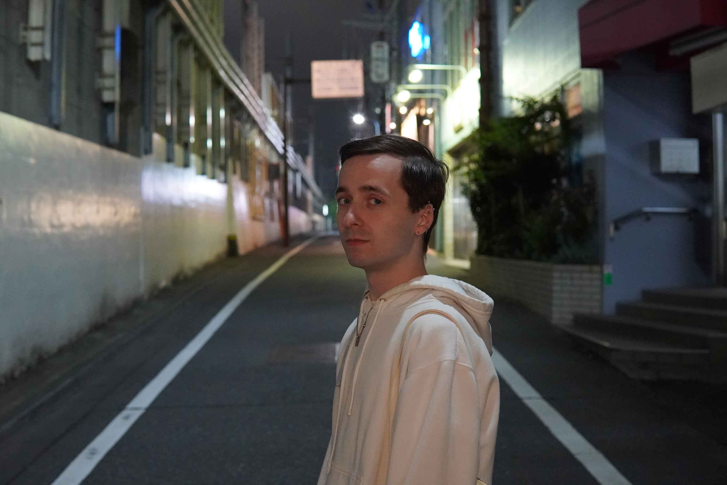 この通りが見えますか?高田馬場で日本語学校に通っていた頃、毎日のように通った道だ。いい思い出がたくさんあります。この白いパーカーを着ている男がいるでしょ?高田馬場で出会った親友だ。